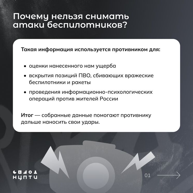Национальным центром информационного противодействия терроризму и экстремизму в образовательной среде и сети Интернет разработаны информационные карточки, которые разъясняют правила поведения при угрозе атаки БПЛА.